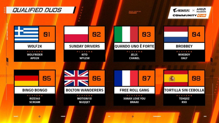 Huit territoires étaient représentés : Grèce, Allemagne, Pologne, Royaume-Uni, Italie, France / BeLux, Pays-Bas et Espagne. Ce format a permis de connecter les différentes scènes Rocket League en Europe et de créer une véritable dynamique communautaire.